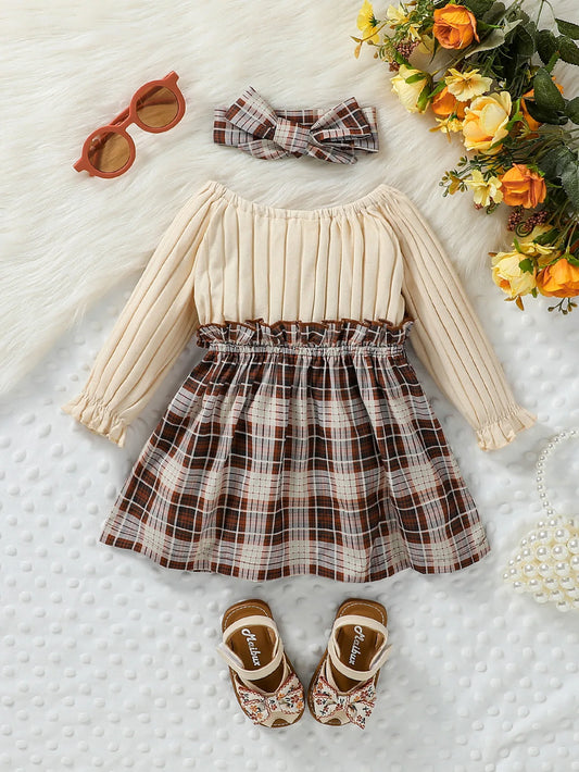 Baby Girls Long Sleeve With Bow Plaid Fahion